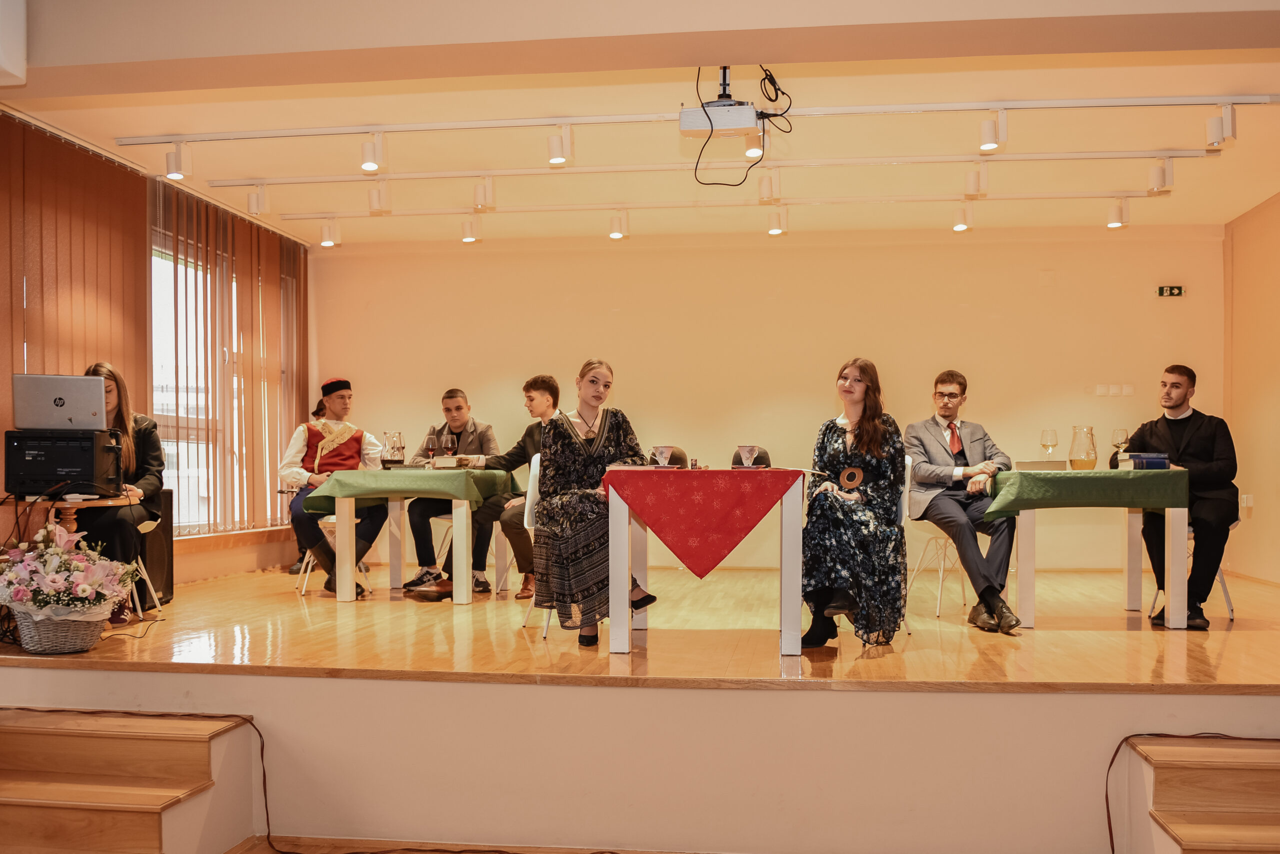 У наставку програма, ученици првог, другог и четвртог разреда извели су представу „Сабирајући центар“ за запослене, госте и своје вршњаке. Сценарио, који је припремила професорка српског језика и књижевности Драгана Јоцић, кроз изузетну глуму ученика, објединио је на школској сцени најзначајнија пера српске књижевности и кључне теме њихове литературе, као стубове наше културе и писане традиције.